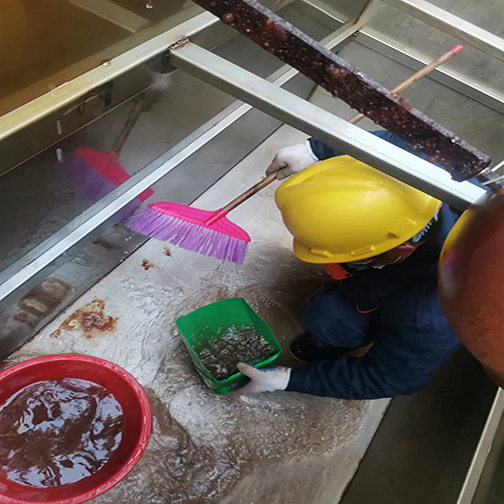 3.以高压洗净机或人工刷洗,清除池底淤泥、杂物。